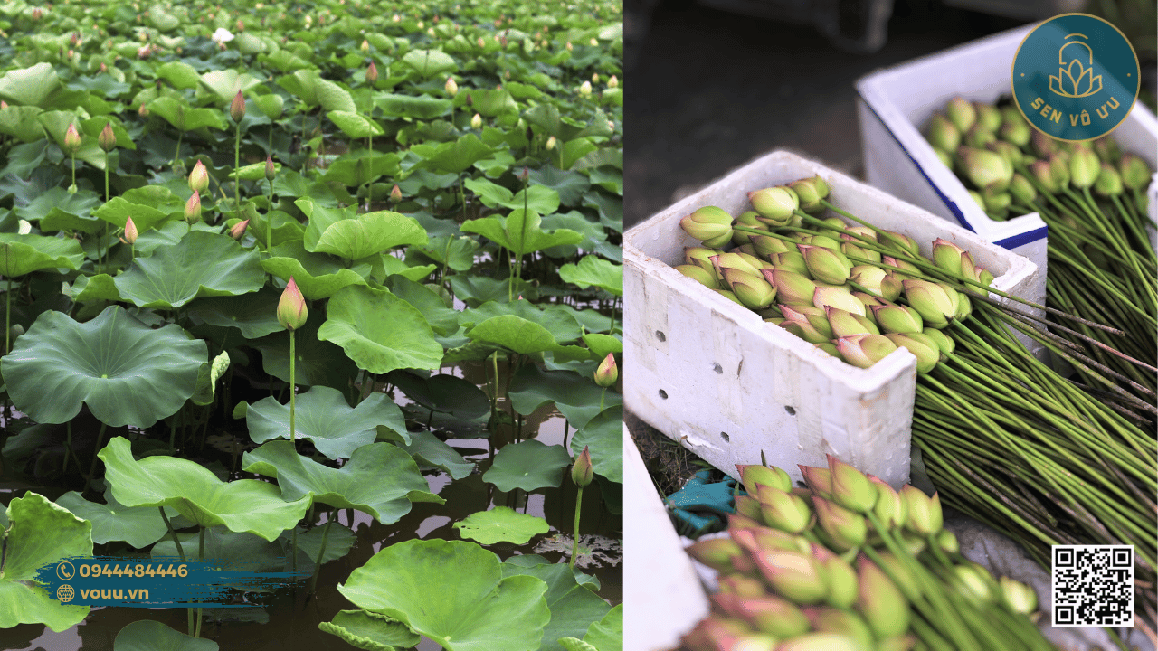 Hoa sen tươi: Chọn những bông hoa sen tươi, cánh hoa còn nguyên vẹn, không bị dập nát. Nụ hoa nên còn đóng kín để hoa nở từ từ và lâu tàn hơn. Không chọn hoa còn quá non hoặc quá già, quá non khiến hoa khó nở, hoa già thì nhanh tàn.