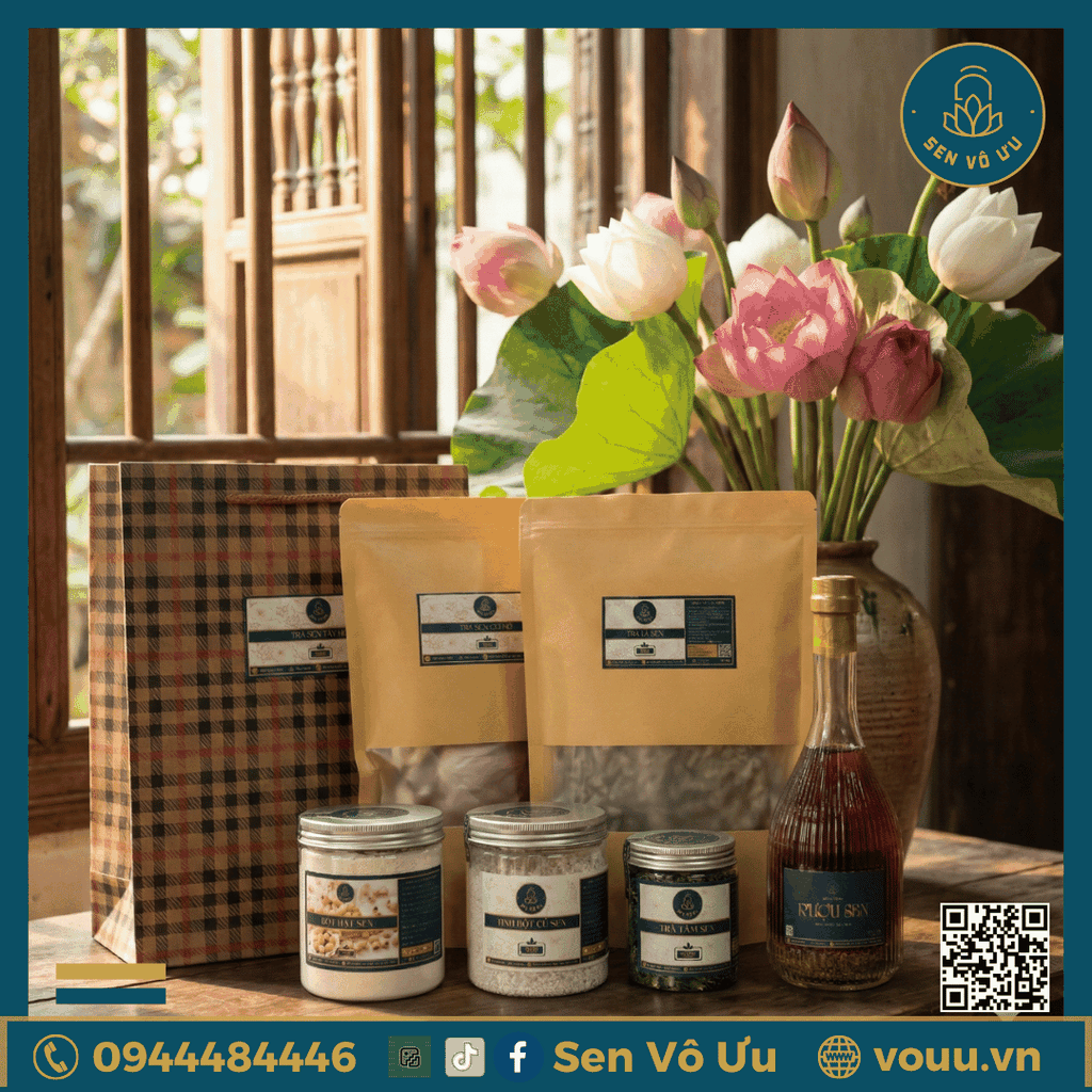 Combo Đoàn Viên An Khang là hộp quà Tết trọn vẹn nhất từ sen của Sen Vô Ưu, hội tụ đầy đủ các sản phẩm vừa mang giá trị dinh dưỡng, vừa giàu ý nghĩa tinh thần cho dịp đầu năm.
