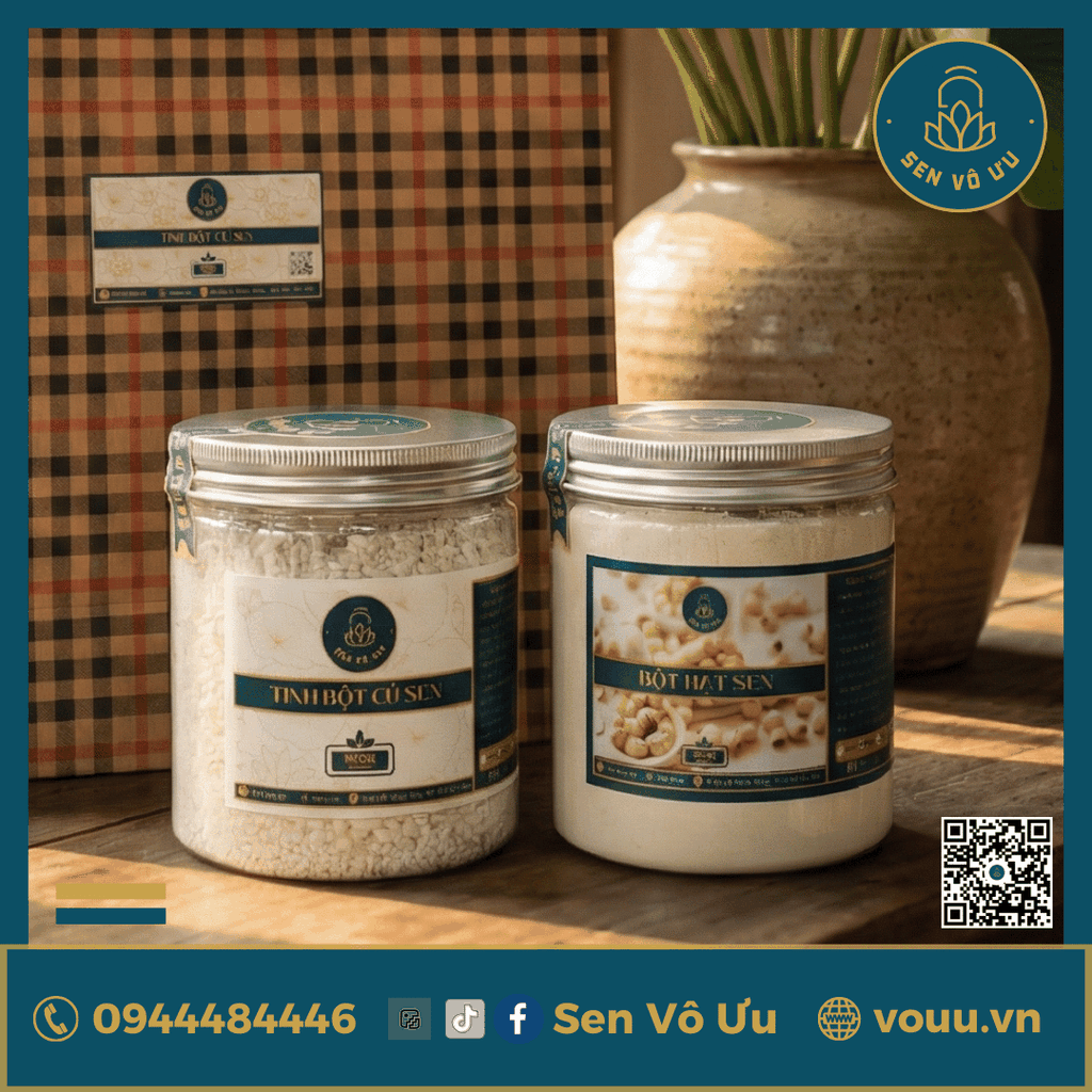 Tinh bột củ sen là nguồn dinh dưỡng dồi dào, chứa nhiều vitamin và khoáng chất thiết yếu như vitamin C, B6, chất xơ, sắt và kali. Sản phẩm này không chỉ giúp cải thiện tiêu hóa, tăng cường hệ miễn dịch mà còn hỗ trợ làm đẹp da, giúp da luôn tươi trẻ và mịn màng. Với Sen Vô Ưu, tinh bột củ sen được sản xuất từ những củ sen tươi ngon nhất, đảm bảo nguyên chất và không chứa chất bảo quản.