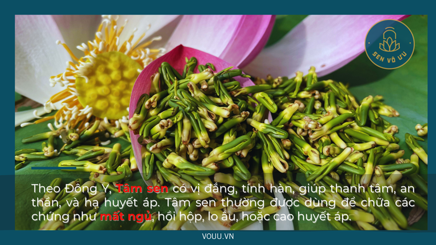 Tâm sen chứa nhiều hoạt chất có lợi như alkaloid, flavonoid, vitamin nhóm B, và các khoáng chất như magie, kali. Những thành phần này giúp tâm sen có tác dụng tốt đối với hệ thần kinh, tim mạch và tiêu hóa. Nhiều bạn hỏi Sen Vô Ưu sử dụng tâm sen tươi hay tâm sen khô tốt hơn? Xin trả lời bạn: