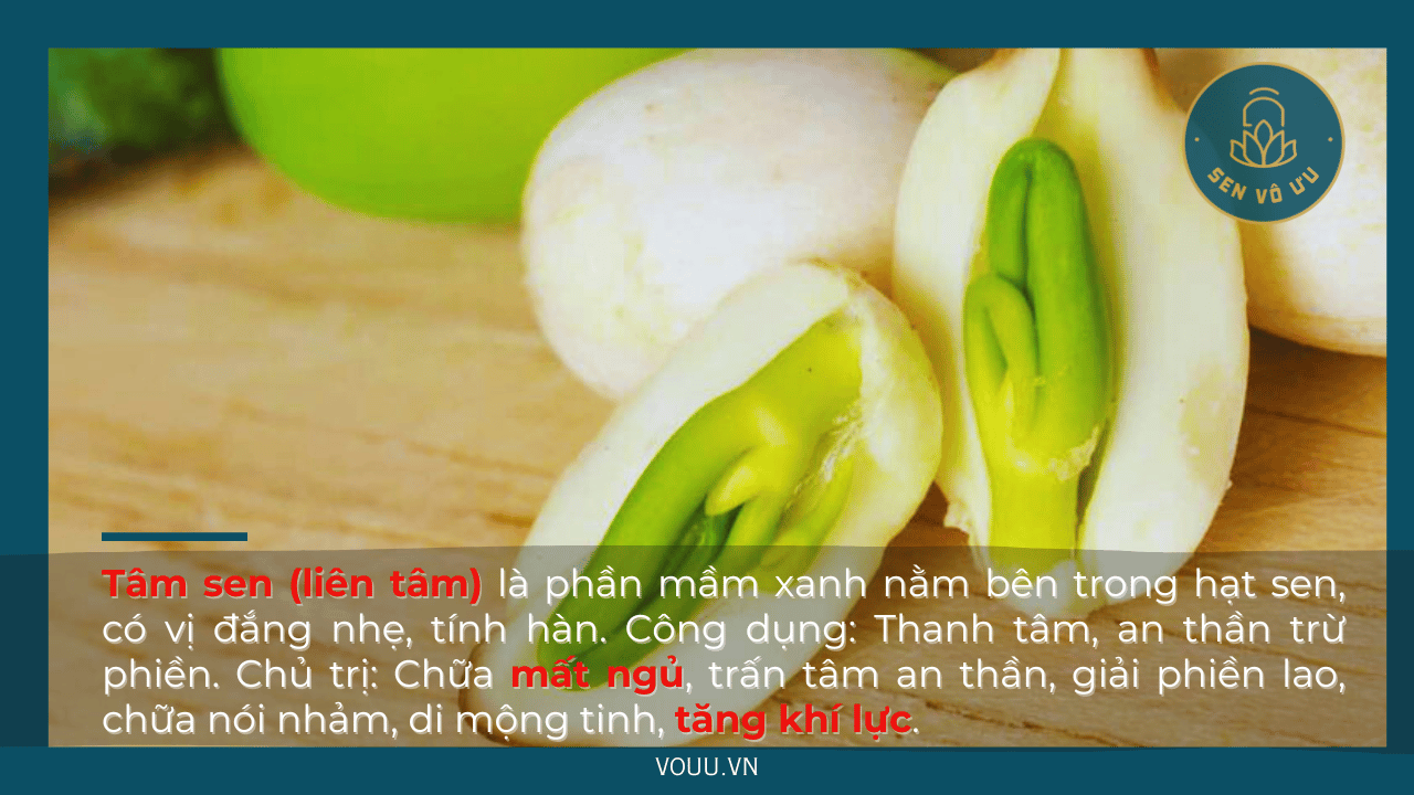 Sen Vô Ưu là thương hiệu uy tín chuyên cung cấp tâm sen chất lượng cao. Sản phẩm được thu hái và chế biến theo quy trình khép kín, đảm bảo giữ nguyên dưỡng chất. Bạn có thể mua tâm sen tại: