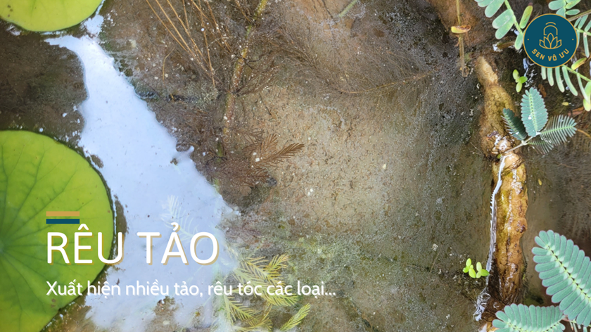 - Chậu sen xuất hiện nhiều rêu, tảo, váng bẩn.