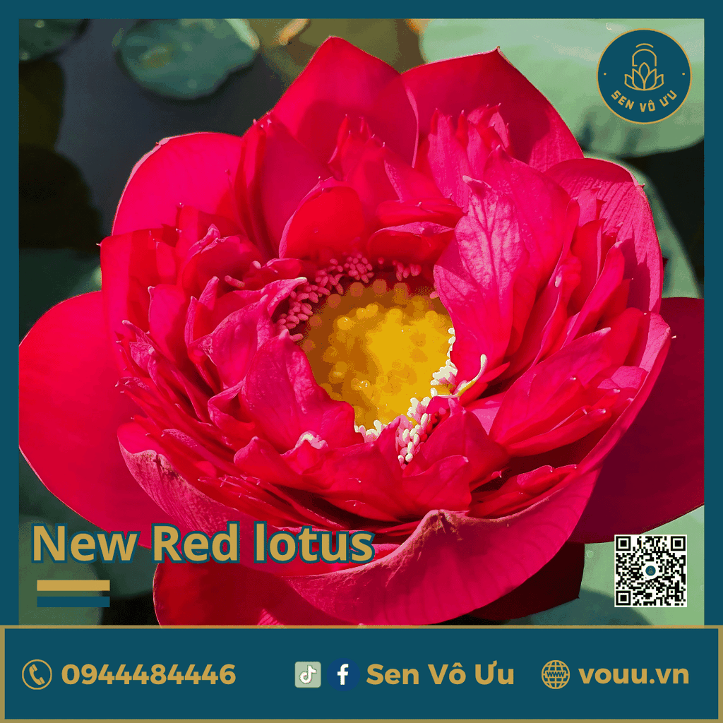 Giống sen NEW RED LOTUS là sen tầm trung, được lai tạo bởi anh Quan Do năm 2019. Dễ chăm sóc, siêng hoa, nếu được cung cấp đủ chất nhụy hoa sẽ tạo 1 vòng tròn. Hoa kép, có nhiều cánh.
