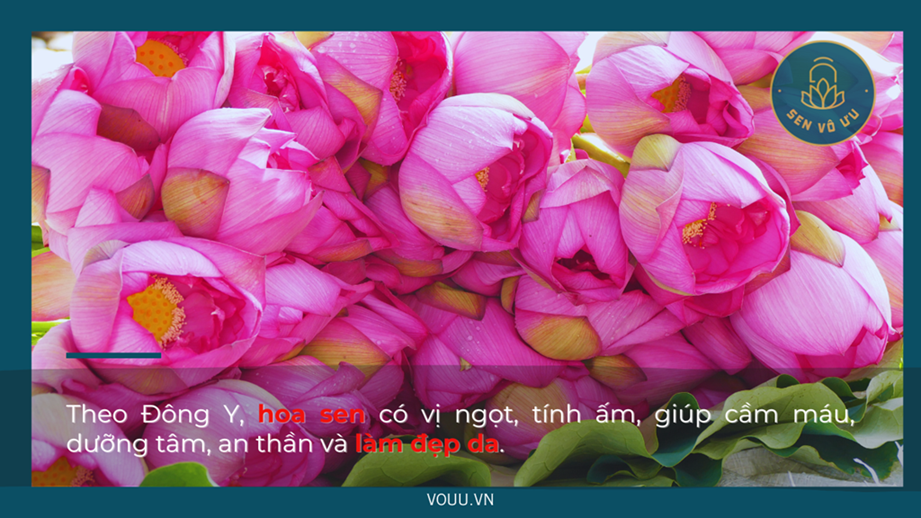 - Hoa sen có vị ngọt, tính ấm, giúp cầm máu, dưỡng tâm, an thần, và làm đẹp da.
